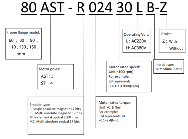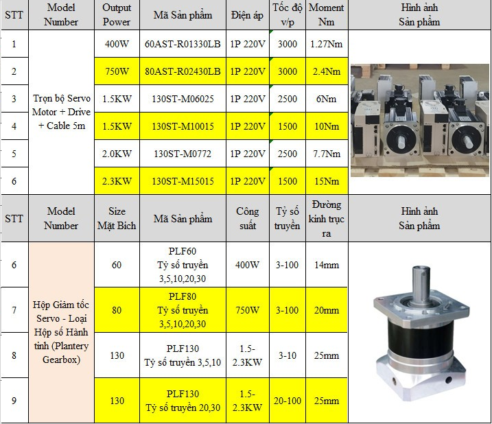 Bảng thông số Servo motor + driver + cable ASTC các dòng phổ thông.